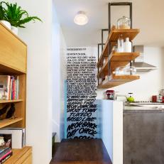 Columbus Open Shelving Kitchen Contemporary With Red Stool