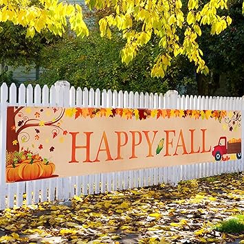 Large Happy Fall Banner Fall Decorations Thanksgiving Decor Fall Maple Leaves Pumpkin Banner Autumn Fall Party Outdoor Indoor Decor Supplies 8 2