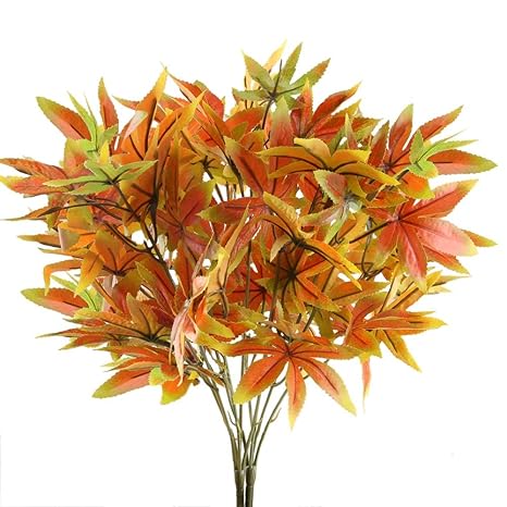 Nahuaa 2pcs Artificial Shrubs Fake Fall Bushes Large Silk Autumn Maple Leaves Bundles Indoor Outdoor Table Centerpieces Arrangements Home Kitchen