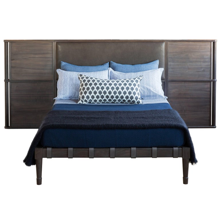 Jasper Bed Queen Size In Silver Grey Walnut With Leather Upholstered Headboard